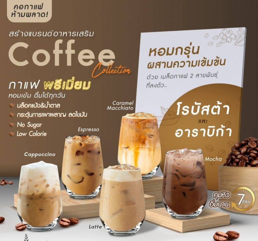 YS Healthy Coffee คุณสมบัติ: ควบคุมความหิว ส่วนผสม: กาแฟอาราบิก้า, สารสกัดจากถั่วขาว, คอลลาเจน, วิตามิน ราคา: 390 บาท